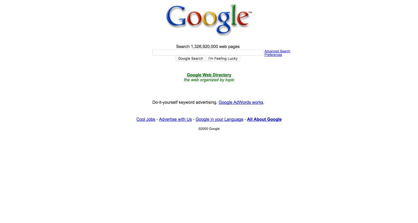 Google, on the other hand continued to refine the already refined homepage and kept it very simple allowing the users to just search. Google felt threatened by Yahoo in the late 90s and added a Yahoo style web directory(organized by topic). But it was clear that the homepage was not to be meddled with and it just had a link to a directory. It was in 2000 that Google started selling advertisements and there are a couple of links on the homepage related to that(only a couple of links to own's business compared to the numerous in Yahoo's homepage).